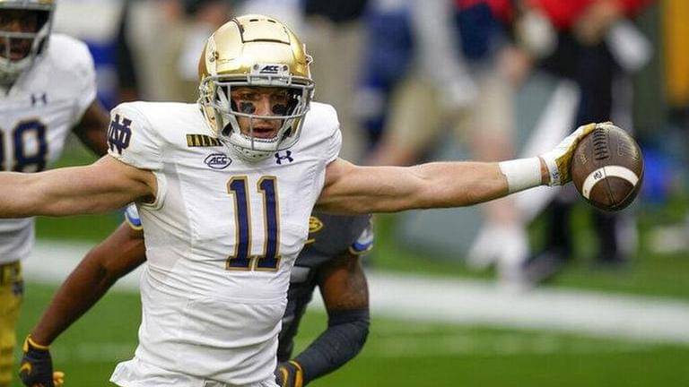 Notre Dame effectively ended any hope Pitt — which has developed a reputation in recent years of being the occasional giant killer — might have had late in the second quarter. Linebacker Bo Bauer's first career pick set up a 2-yard touchdown run by Kyren Williams that pushed it to 21-3 with 1:29 left in the first half. Three Pitt plays went nowhere and Irish sophomore defensive lineman Isaiah Foskey raced in untouched to block Kirk Christodoulou's punt. Foskey chased the ball into the end zone to pick it up to put things out of reach at 28-3.
