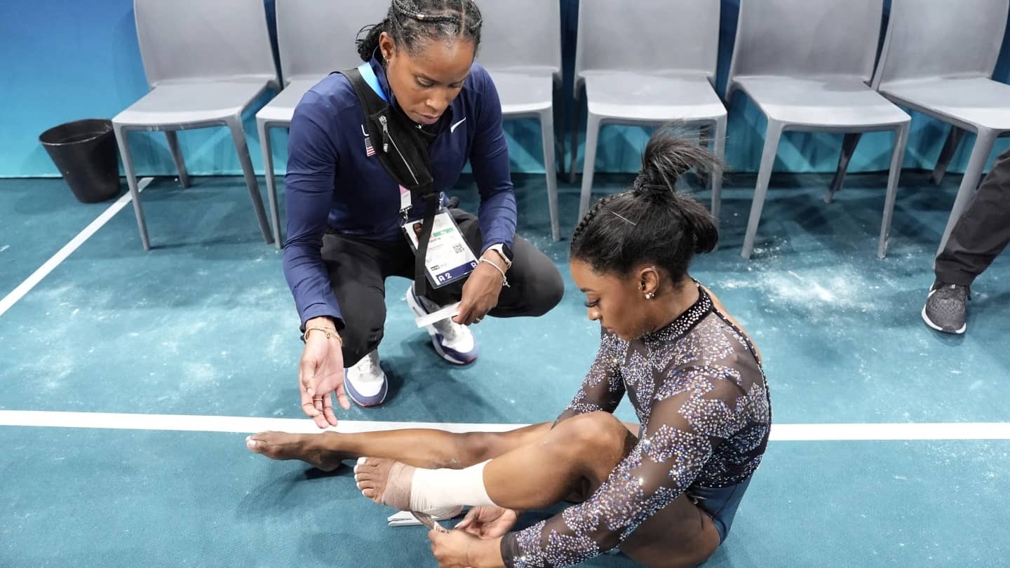 The issue hardly slowed her down. Biles posted the highest score on floor and vault — both after the injury — as she tries to add to her career total of seven Olympic medals.