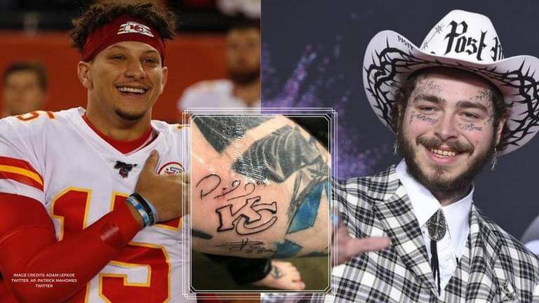 Rapper Post Malone got a tattoo of the signatures of Chiefs duo Patrick Mahomes and Travis Kelce after he was beaten in a series of beer pong matches.