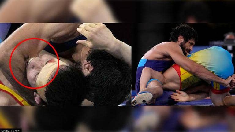 See pics of Ravi Kumar Dahiya bitten by Kazak opponent (Image Sources: Olympics/YouTube)