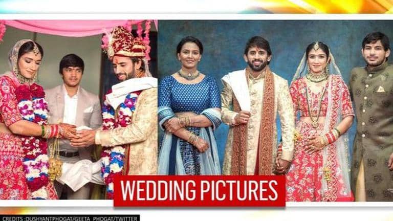 Sangeeta Phogat on Thursday took to her social media handle to share stunning pictures of her wedding with superior world ranking wrestler Bajrang Punia. According to the reports, the youngest Phogat's wedding took place in Balali, Haryana.