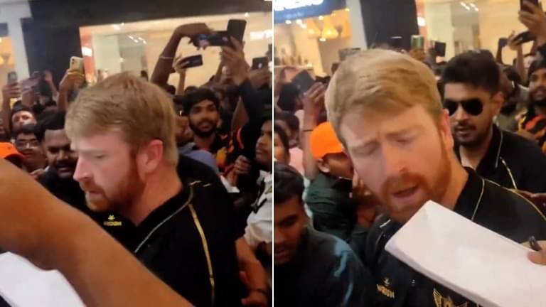 The video shows thousands of fans swarming around Heinrich Klaasen and Jaydev Unadkat, making it difficult for them to move or even breathe properly. Klaasen was seen requesting the mob to slow down and give them some space to pass. However, fans kept pushing and shoving things at their face to get selfies and autographs.