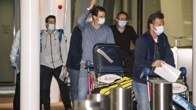 Novak Djokovic, Rafael Nadal and Serena Williams are among a group of players involved in an exhibition event in Adelaide, South Australia state, on Jan. 29. Those players flew straight to Adelaide to begin their hotel quarantine period.
