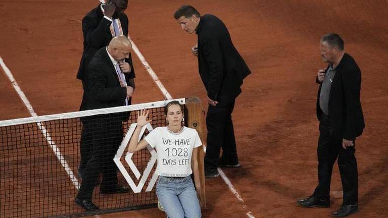 French Open: Climate change activist disrupts semi-final match; ties herself to net