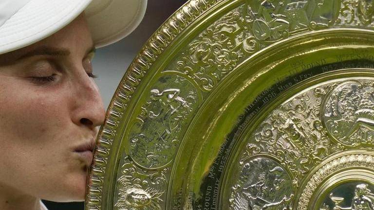Marketa Vondrousova kissing the Wimbledon Championship trophy; Image: AP | Image: self