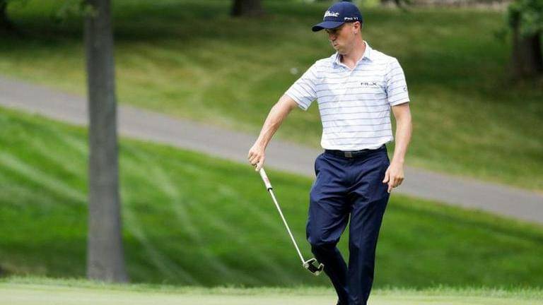 Justin Thomas won his six-hole singles match and was closest to the pin on the decisive final hole as he and Tiger Woods won an exhibition match Tuesday that served as the grand opening of the Woods-designed Payne's Valley Golf Course at Big Cedar Lodge
