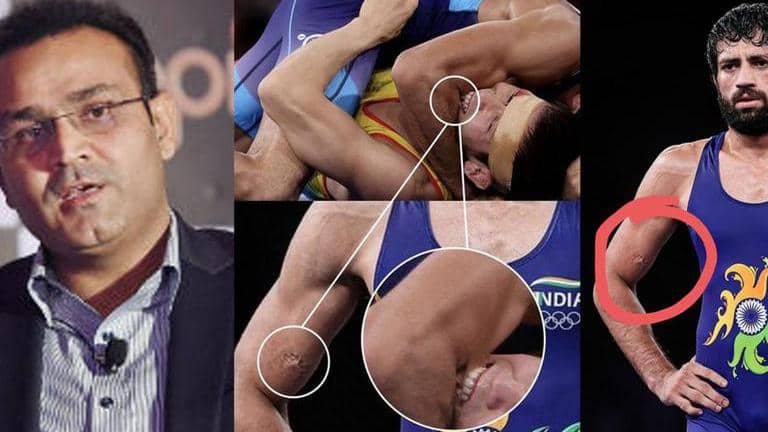 Even though Ravi Kumar Dahiya won the contest and successfully found a place in the gold medal match, he endured a painful bite on his biceps from which he overcame. This act from Dahiya's Kazhakstani rival did not go down well with Sehwag.
