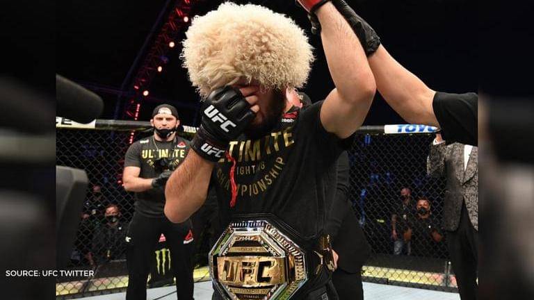Khabib extended his immaculate MMA record to 29-0 with another dominant performance at UFC 254. That's exactly the point where fans left stunned as Khabib Nurmagomedov paid a tribute to his late father, Abdulmanap, weeping in the middle of the octagon before leaving his gloves at the centre and declaring it was his last fight in the UFC.