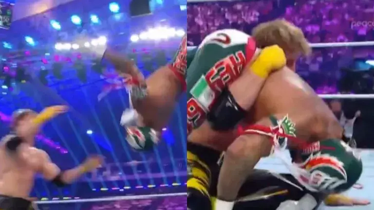 During the US title match between Rey Mysterio and Logan Paul, the challenger seemingly saved the champion in what looked like a super-scary botch moment. Mysterio made a moonsault attempt from the second rope, but he seemingly misjudged the position of Paul. But Logan swiftly came forward to make the catch and manoeuvre it into a body slam.