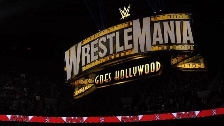 The WrestleMania sign at a Monday Night RAW show; Image: AP | Image: self