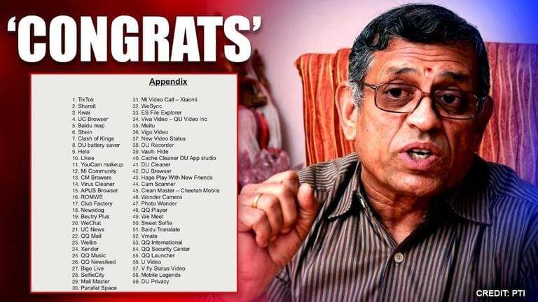 RSS Ideologue S Gurumurthy congratulated the BJP govt on the decision to ban Chinese apps, stating ‘Only this government could have done this!’