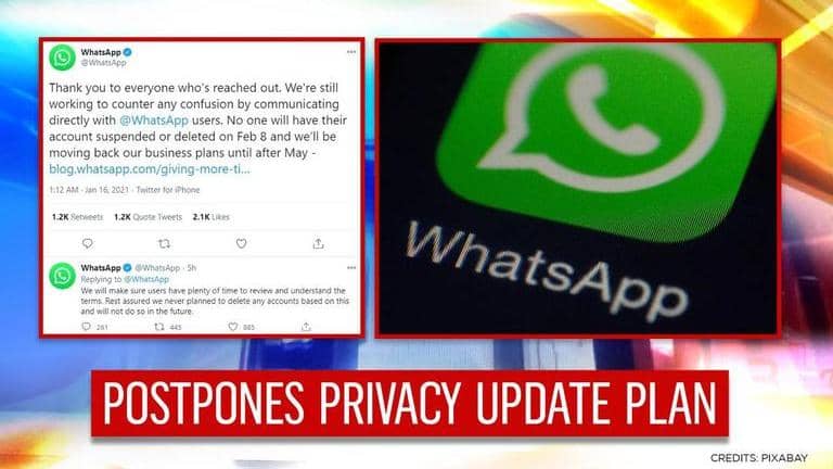 Under fire over its recent privacy policy update, Facebook-owned messenger app WhatsApp on Friday announced that it has postponed its planned privacy update, which will give users more time to review the policy and accept the terms of the app. The decision to postpone the privacy update has been taken due to "misinformation causing concern" among people, the company said in a blog post.