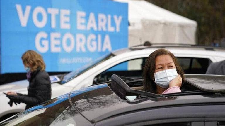 Early in-person voting began Monday in the Georgia runoff. The two races in which Democrats the Rev. Raphael Warnock and Jon Ossoff try to oust Republican Sens. Kelly Loeffler and David Perdue, respectively, will decide which party controls the U.S. Senate.