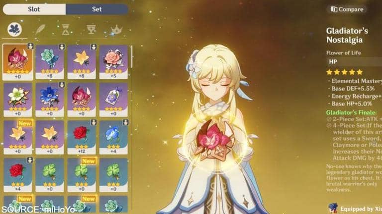 - (4) If the player who is wielding this artifact set uses a weapon like a Sword, Claymore or Polearm, it increases their Normal Attack Damage by up to 35%.