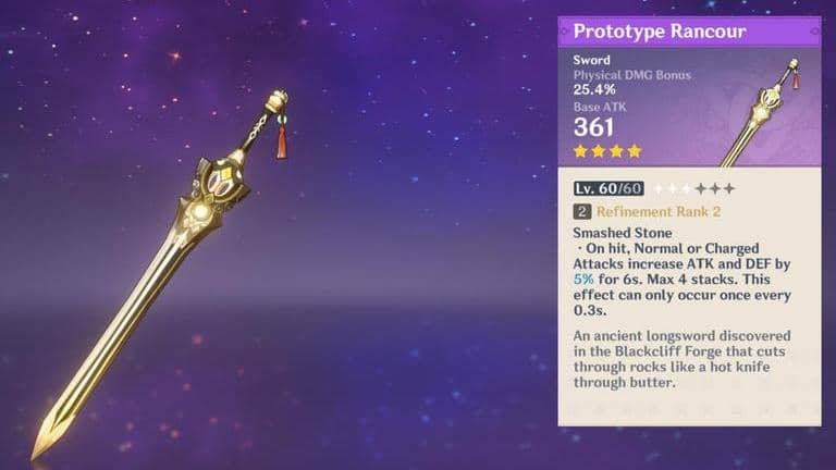 The prototype rancour is one of the weapons in Genshin Impact with a rarity of 4-stars. It is one of the easiest swords to obtain and to refine, which is why most players choose this sword in the initial stages of gameplay. Also, it is a rewarded weapon when a player reached Adventure rank of 10. Continue reading to know more about this weapon.