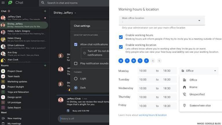 Google Chat Web App gets Dark Mode support; Google Calendar to add work location feature