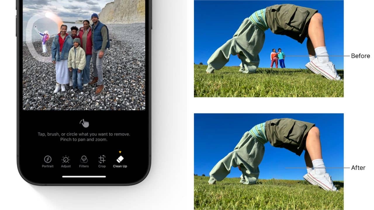 – Click/tap, brush, or circle an object or people in a photo to remove. Apple says users can zoom in or out on a photo for precision removal. While Clean Up works effectively on most things and people, brushing over a person’s face may end up pixelating it.