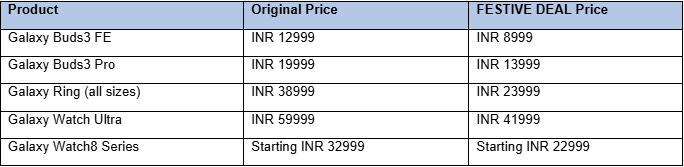 Samsung has put some of its newest wearables on sale for the holiday season in India. These include the Galaxy Watch8 series, Galaxy Watch Ultra, Galaxy Ring, and Galaxy Buds3 FE. The company informs that these are the lowest prices since the debut, which means that customers can now get high-end Galaxy wearables for significantly less money.