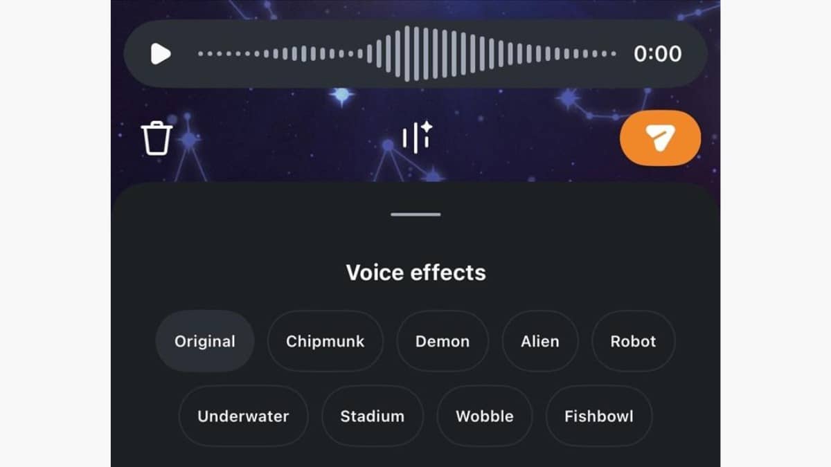 Instagram has added a new feature that allows you to change your voice from original to that of characters like an alien or a robot and send the recording in DMs.