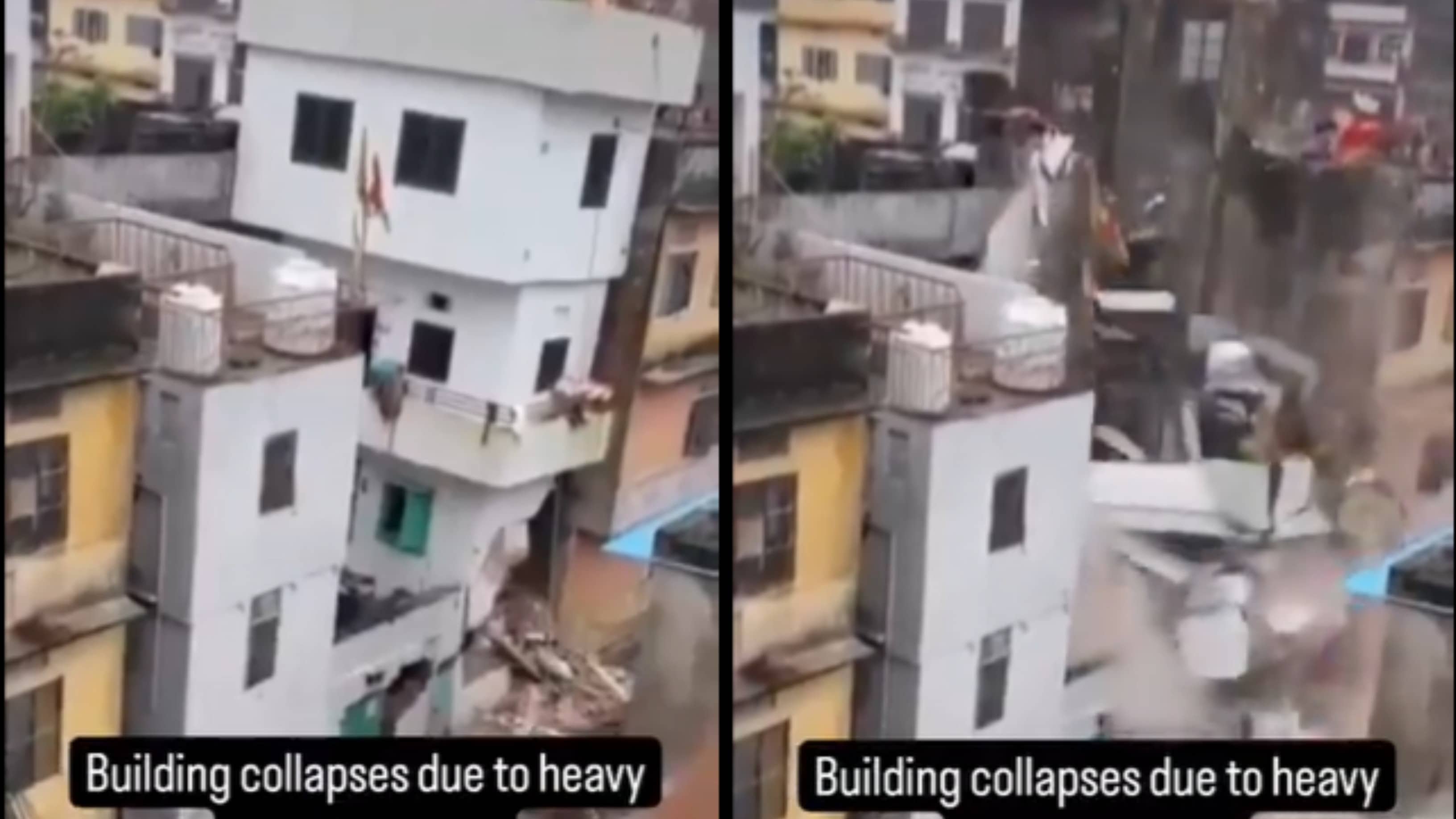 A shocking video that has surfaced on social media shows a multi-story building that collapsed due to heavy rains in Rajasthan's Jaipur.
