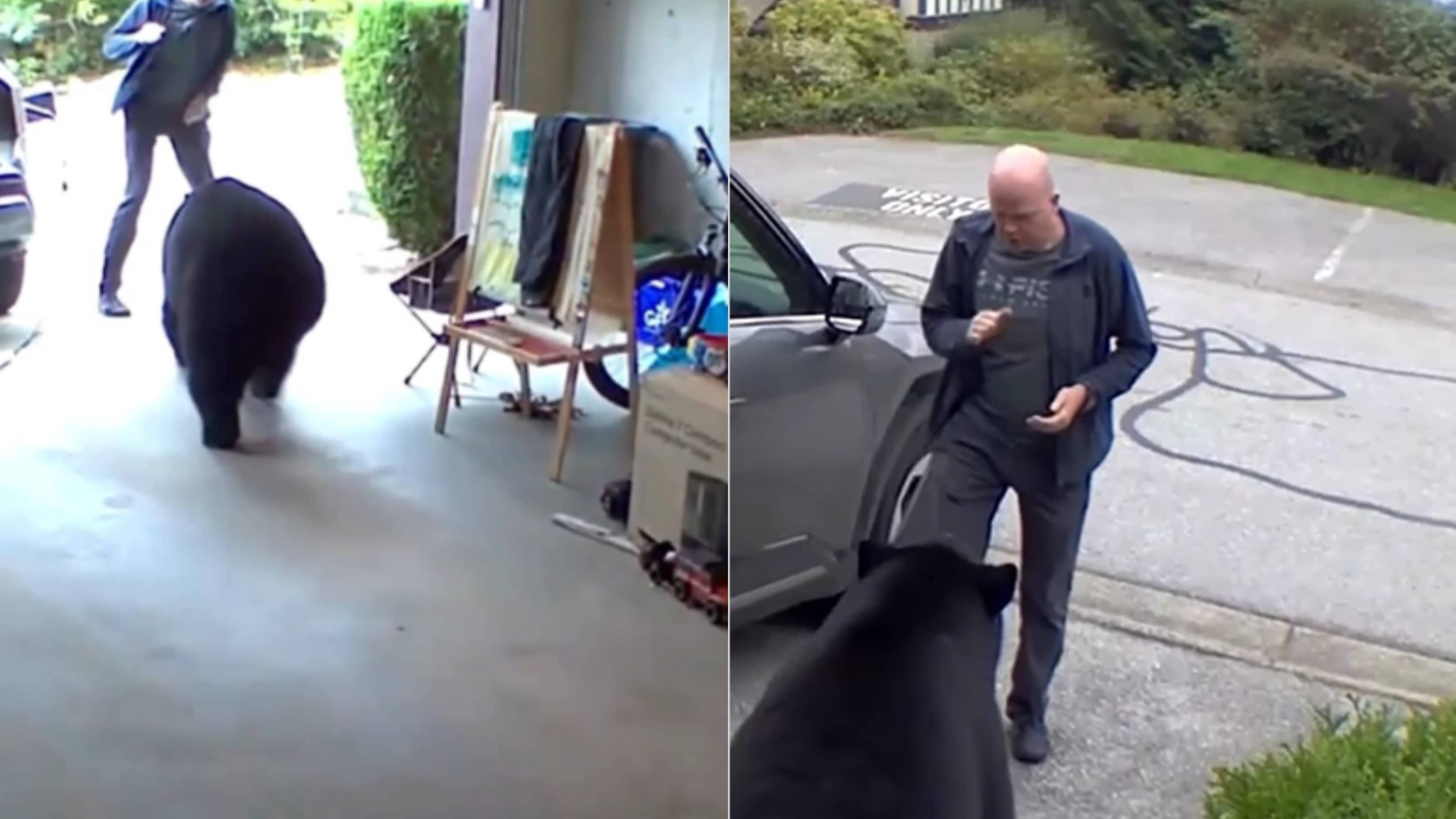 A man in Canada had quite a surprise when he went to charge his electric car in his garage as he comes face to face with a bear.