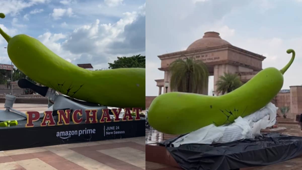 A giant lauki on a cooker in Lucknow is going viral on the internet. It appeared this morning and it was revealed that it's a promo for Panchayat Season 4, releasing June 24 on Amazon Prime Video.