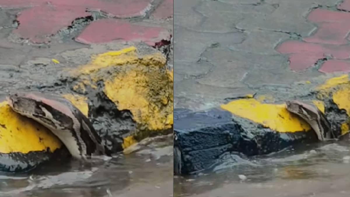 Viral video shows a giant python swimming through flooded Navi Mumbai streets. The snake sighting sparked social media buzz, memes, and warnings during monsoon season.