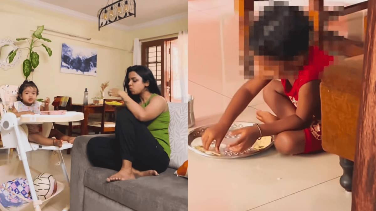 Viral Video: In the age of reels, even simple moments can spark bigger conversations. What started as a simple reel on Indian parenting turned into a social media storm for Bengaluru-based nutritionist Sonakshi Sharma, after she posted a video showing her baby eating in a high chair while her househelp’s child ate kheer and roti while sitting on the floor.