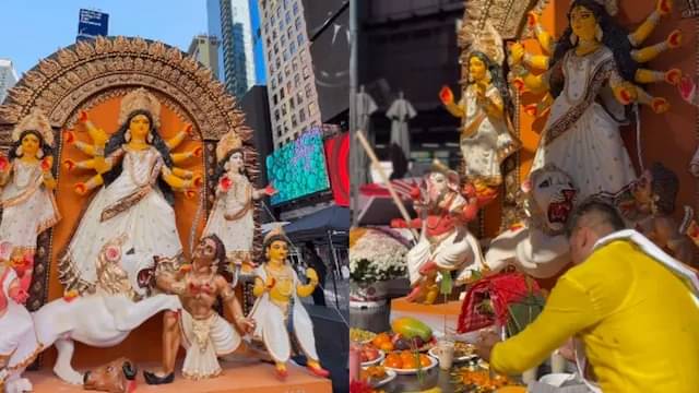 This year, New York City celebrated the Durga Puja festival for the first time at the famous Times Square. Several videos capturing this wholesome Navratri celebration have gone viral on social media, capturing the vibrant atmosphere as both Indians and Americans participated in the navratri celebrations.
