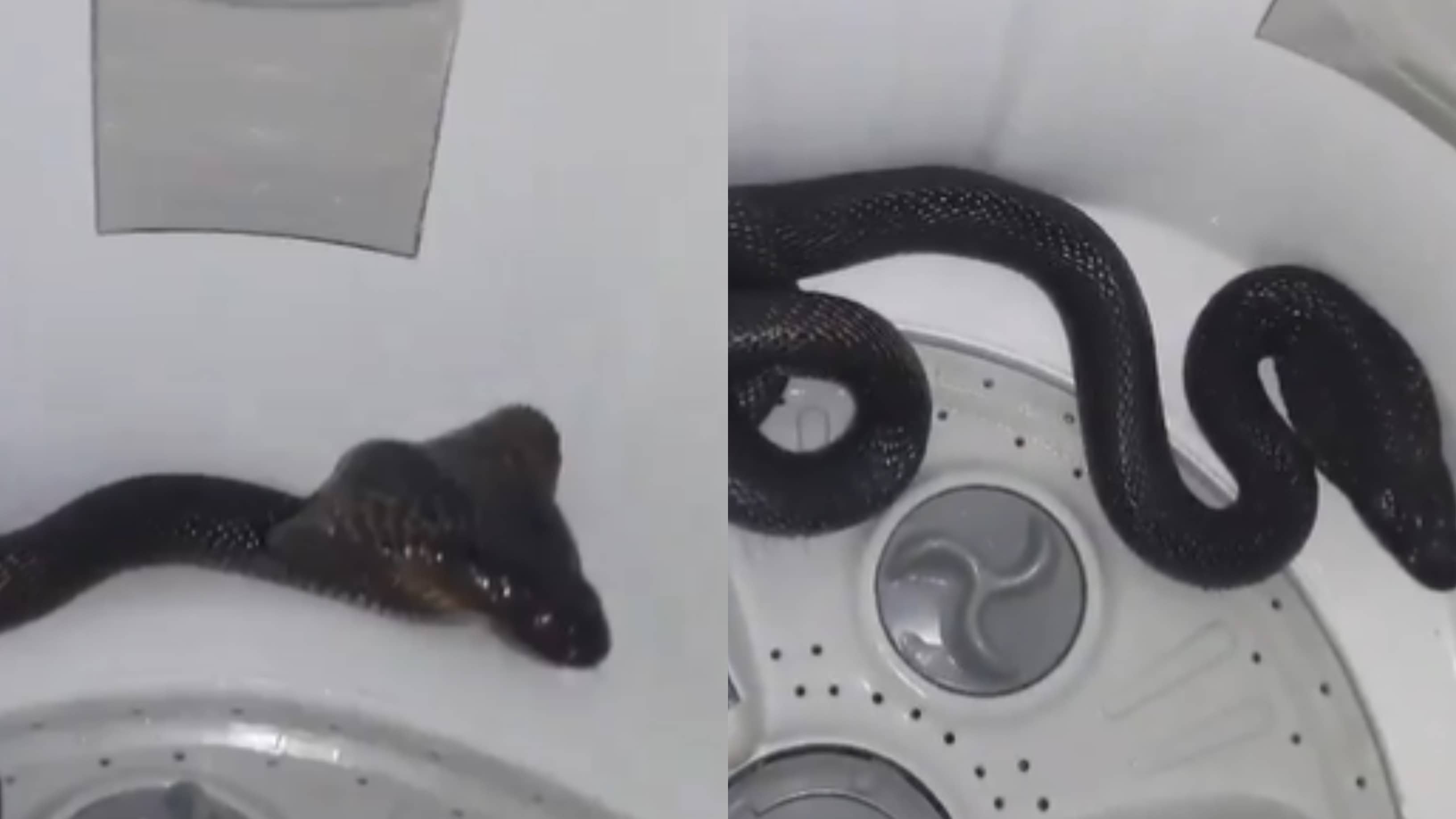 A family in Kota, Rajasthan, was left in shock when they found cobra inside a washing machine. When one of the family members opened the washing machine's lid, a massive snake was found inside, resting peacefully.
