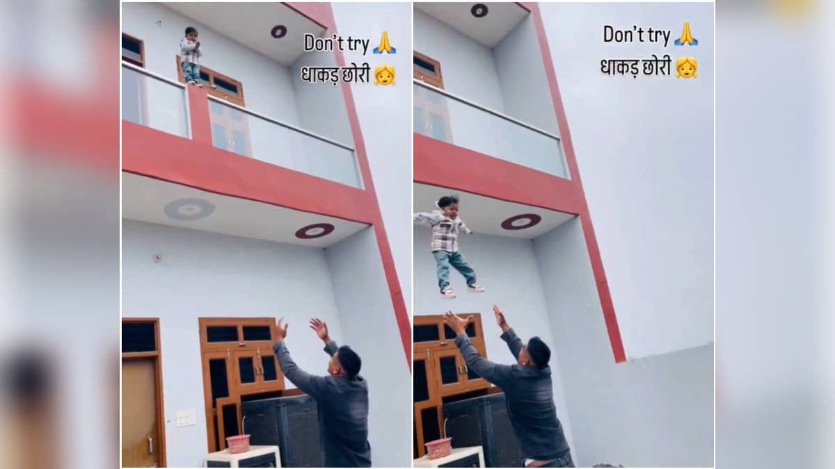 A shocking video of a man making his daughter jump off the roof of a house is going viral on social media, triggering widespread concerns over how far people are willing to go to make their Instagram reels stand out.