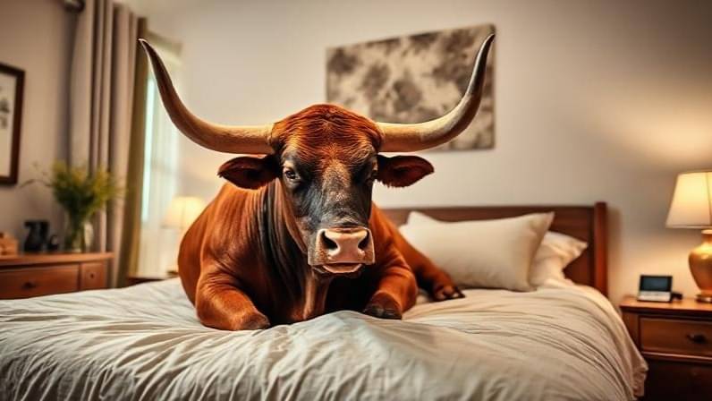 A cow ran straight into their bedroom, followed closely by a bull. Before anyone could react, the bull climbed onto the bed.