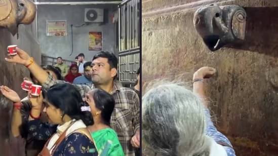 Viral News: A viral video from the Banke Bihari Mandir in Mathura shows devotees mistaking water dripping from an elephant sculpture for charan amrit which is holy water from the feet of Lord Krishna.