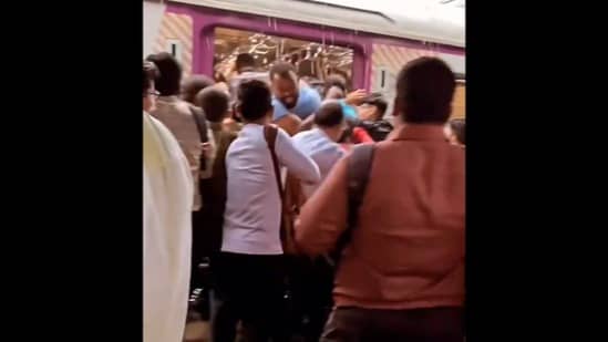 Mumbai: The Mumbai local train has made commuting easier for thousands but boarding and deboarding have become a challenge. A viral video from the City of Dreams shows a man pushing and hitting people to get off the train.