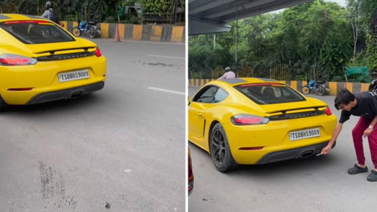"What's the better way to Light a Cigarette? PS: I don’t smoke. Smoking is injurious to health. Ft - Porsche 718 Cayman in Racing Yellow Shade W/ flame kit.” captions of the video reads.
