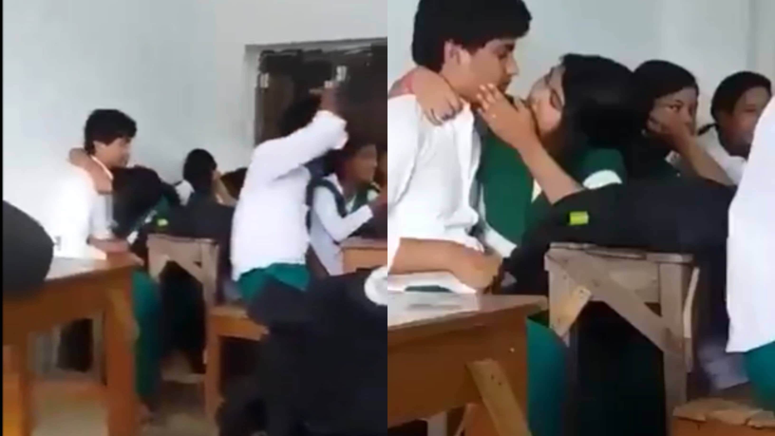 The viral video is said to be from a school in Noida; however, the location is still not confirmed. The viral video clearly shows boys and girls lip-locking and hugging each other while sitting on the back bench of the classroom while the class is still going on.