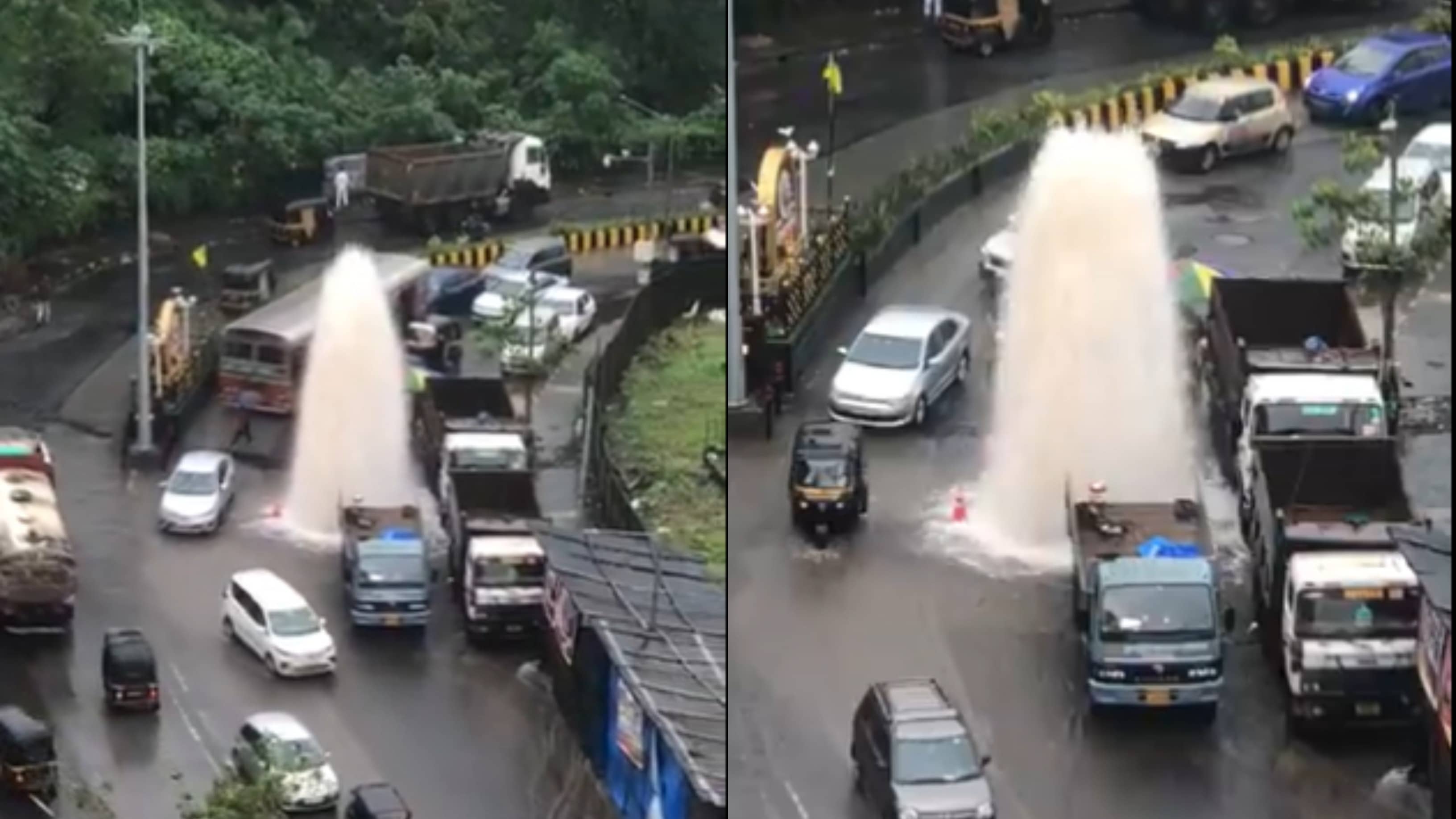 Water Fountain Bursts In Middle Of Chandivali Farm Road In Powai | WATCH