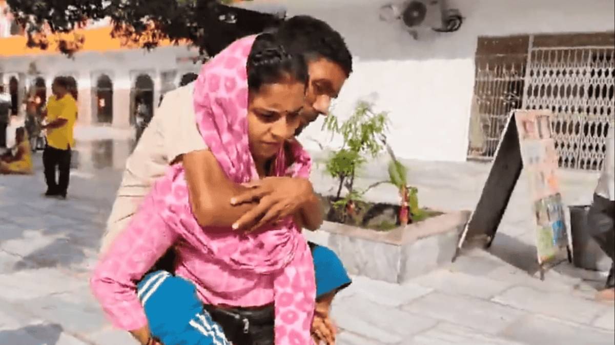 Haridwar: In a moving display of love and devotion, a woman named Asha from Muzaffarnagar carried her paralysed husband on her back for a 150-kilometre stretch during the ongoing Kanwar Yatra.