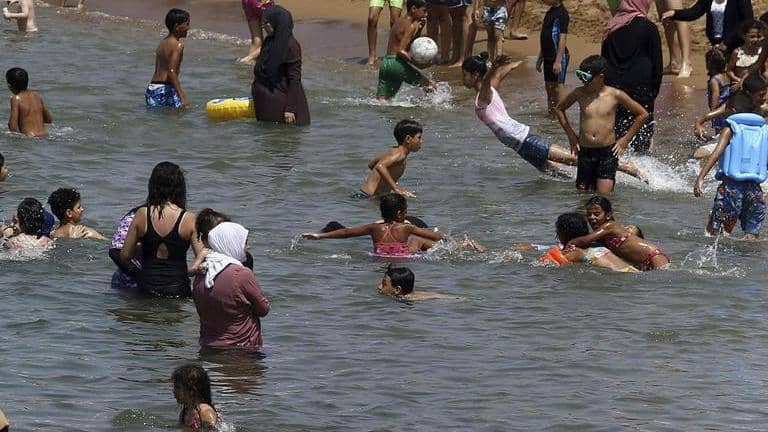 Crowds packed beaches Saturday in the capital Algiers, celebrating the opportunity to swim in the Mediterranean Sea amid the August heat.