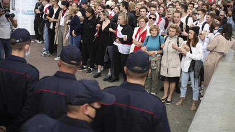 Protesters took to the streets of the capital of Belarus, Minsk, on Wednesday for another night of demonstration against the nation's authoritarian president and an election the opposition sees as rigged.