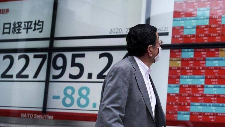 Asian shares turn lower as virus caseloads surge