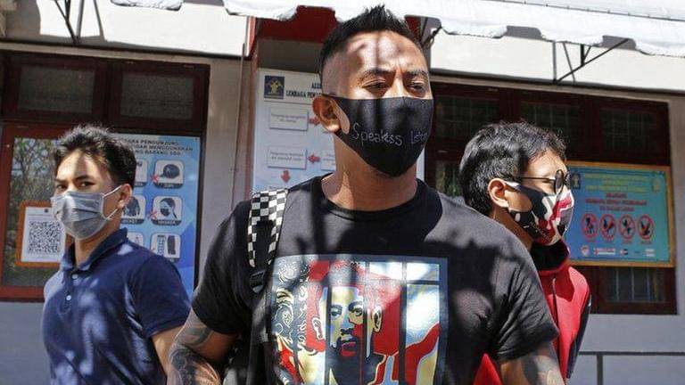 Cabantog, wearing a mask and a black T-shirt with a picture of a prisoner behind bars and words “Myuran hope,” was escorted Saturday through a crush of reporters outside the Kerobokan prison in Denpasar, the Bali provincial capital, into a waiting car. He made no comment.