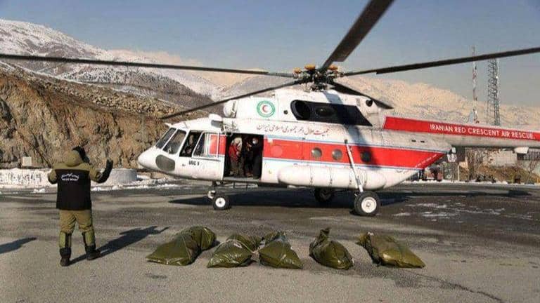 State TV aired footage showing emergency crews using a helicopter to search for the missing. Iran's Red Crescent Society also released photos of rescue workers unloading body bags from a helicopter on Saturday.