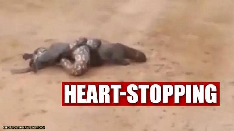 A scary video has surfaced on the internet which shows a wild cat struggling to free itself from the grip of a boa-constrictor. The incident reportedly took place in Las Lajitas, Salta in north-west Argentina. Through the video, it can be seen the snake wrapped around jaguarundi, a small wild feline in the middle of the road. The cat can be seen struggling hard to free itself from the snake's grip.