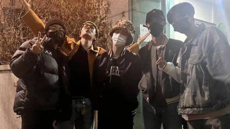 Jin posed for a photo with his BTS bandmates Jungkook, RM, Suga and J-Hope, which seems to be from Harry Styles concert in Seoul.