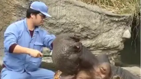 Viral: Can you recall ever witnessing a hippo brushing its teeth? It's the most fascinating thing we've seen today, and neither have we until now. The zookeeper in a video that went viral and was widely shared on Twitter was assigned the unusual duty of cleaning the mammal's teeth, which can reach a length of 1.5 feet.