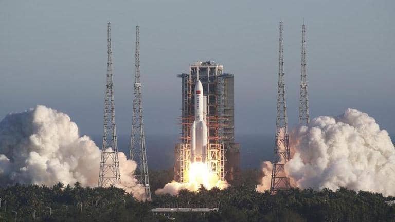 The unmanned spacecraft and its return capsule were flung into space aboard a Long March 5B rocket in its debut flight Tuesday evening from the Wenchang launch center in the southern island province of Hainan.
