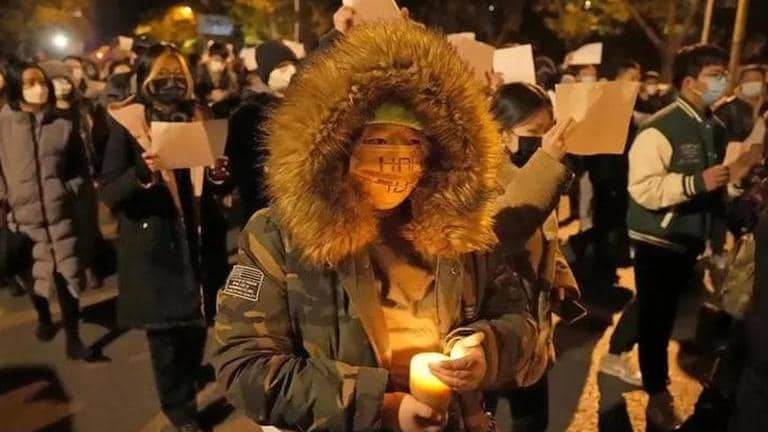 Yet bolder voices called for greater freedom and democracy and for Xi, China's most powerful leader in decades, as well as the party he leads, to step down speech considered subversive and punishable with lengthy prison terms. Some held up blank pieces of white paper to demonstrate their lack of free speech rights.