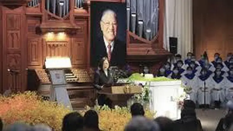 The service was held at the Aletheia University in Taipei on a balmy Saturday morning, with President Tsai Ing-wen honoring Lee for bringing a peaceful political transition to the island democracy.