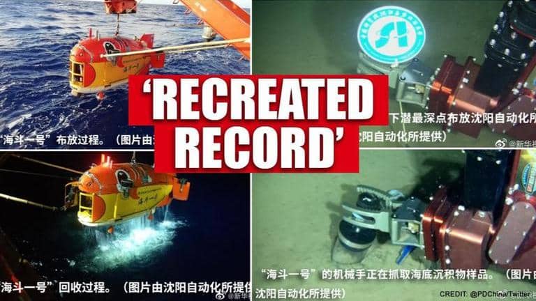 China’s unnamed submersible Haidou-1 reportedly dived to a depth of 10,907 meters at the world’s deepest ocean point and recreated the record for the country.